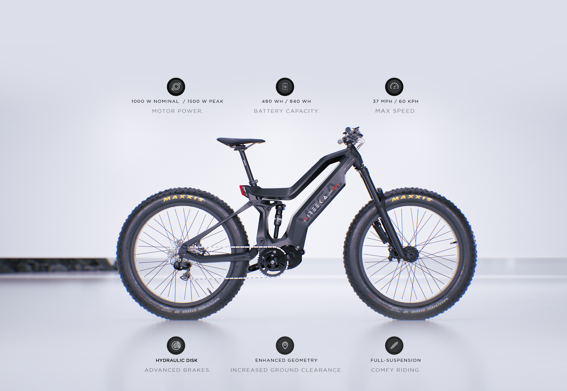 The Nireeka Mega is engineered for ultimate off-road domination with full-suspension geometry and 140mm of travel. Equipped with high-performance air shocks both front and rear, it delivers an ultra-smooth ride no matter how rough the trail gets.
