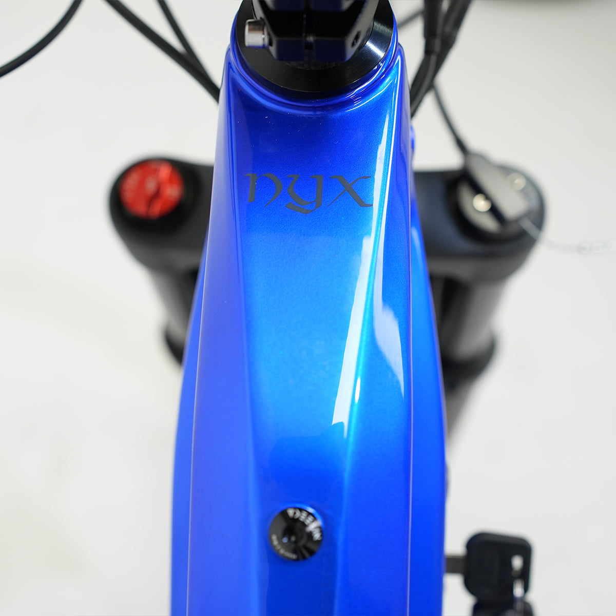 Le Nyx, un vélo de trail tout suspendu primé, vous offre une sensation de conduite professionnelle parfaite ainsi qu'un niveau de sécurité élevé. Équipé du système de suspension haut de gamme RockShox, il vous offre une plage de débattement importante de 140 mm à l'avant et à l'arrière.