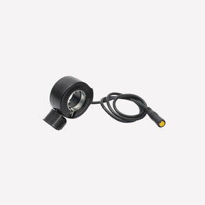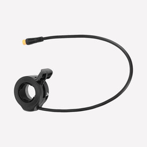 Grâce à la poignée d'accélérateur, vous pouvez conduire le vélo sans pédaler, comme sur une moto. Il s'agit d'une poignée d'accélérateur à pouce, ce qui signifie que vous devez pousser le levier pour l'engager.
