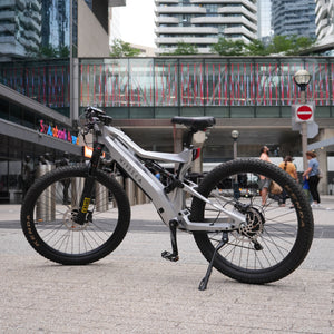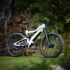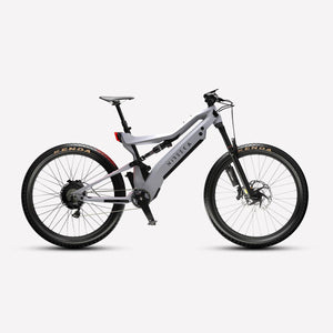 Nireeka Revenant is a full-suspension, carbon fiber, and powerful ebike with an optional 1000w motor and more than 50 miles (80 km) range with a single charge on the upgraded battery.